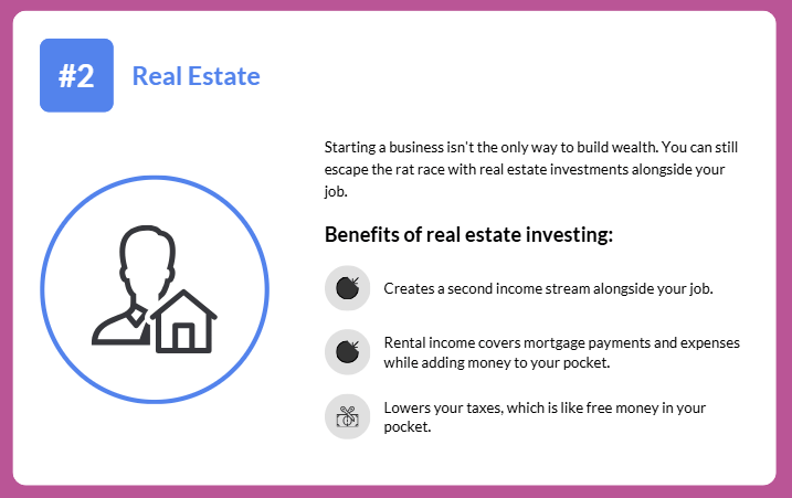 • Real estate also lowers your taxes, which is like free money in your pocket.