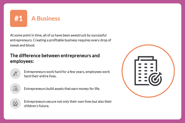 The difference between entrepreneurs and employees is the same as passive income vs. active income.