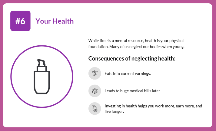• Upgrade your skills in your free time, weekends can be spent on a side hustle, learning, or following a passion.