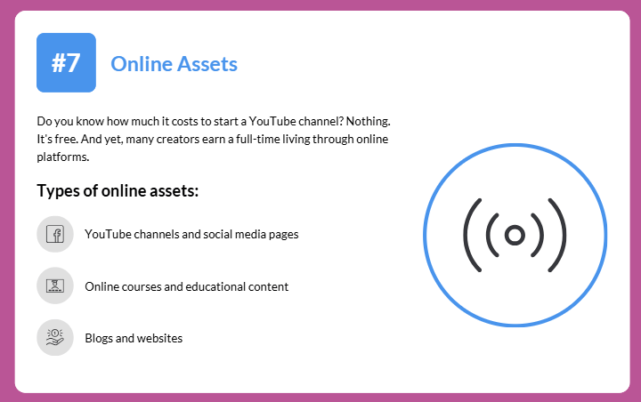 Here are eight assets that can make people rich and allow them to stop working for money.