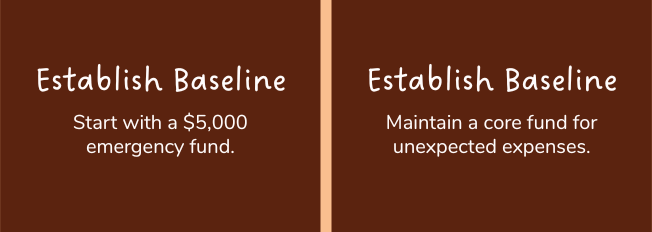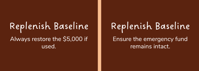 That totals $5,000. This money sits in the emergency fund account and does not move. It’s there as a safety net.