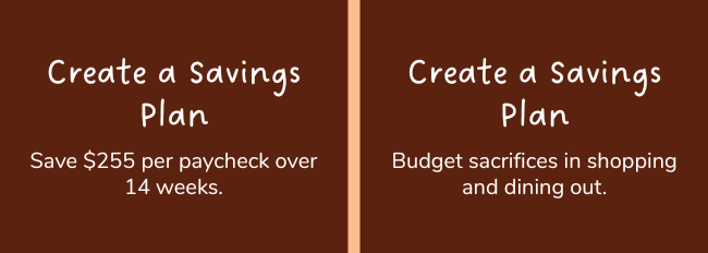 Over the next 14 weeks, that means I need to save $255 per paycheck.