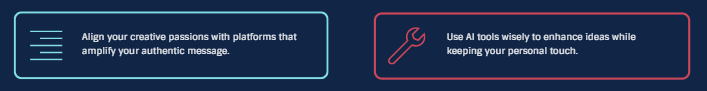 Let’s face it, AI is taking over. There’s not much we can do to stop it, so why not use it to boost creativity and help with your content and personal brand? I love to use AI for brainstorming, content creation, and looking up trends. Let AI complement your brand while keeping your voice human and relatable.