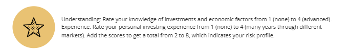 - Understanding: Rate your knowledge of investments and economic factors from 1 (none) to 4 (advanced).