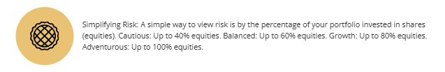 A simple way to view risk is by the percentage of your portfolio invested in shares (equities):